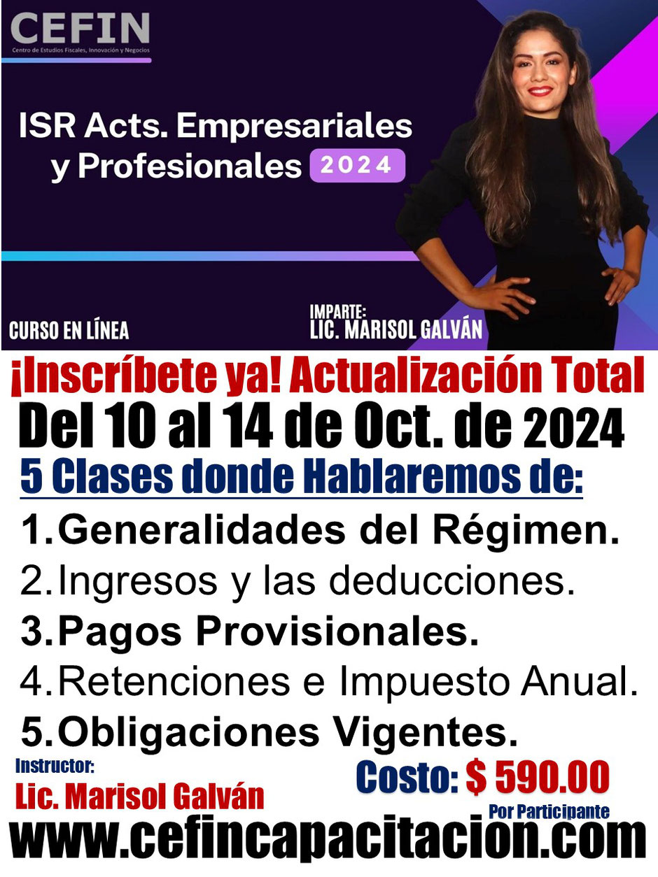 Este curso te dará las herramientas para dominar al 100% el Régimen Fiscal de las Personas Físicas con Actividades Empresariales y Profesionales. ¡Inscríbete hoy mismo y asegura tu lugar!
